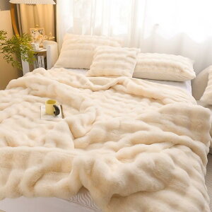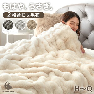 もこもことしたシルエットが可愛い、ラビットファー調の2枚合わせ毛布 冬用 もうふ 布団 ダブルサイズ