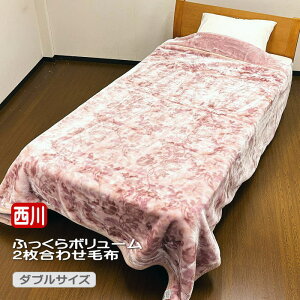 毛布 2枚合わせ 昭和西川 ダブルサイズ 約180×210cm。
