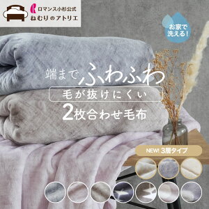 ねむりのアトリエ 限定品 2枚合わせ毛布 毛布の端までふわふわ感が続くヘムレスデザイン。 寝返り時に首元、お顔周りへの摩擦が少ない優しい肌触りは、お肌が敏感な方にもおすすめ。 高密度で毛抜けしにくく