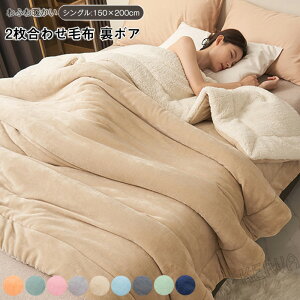 2枚合わせ もうふ ブランケット シングル あったか フランネル シープボア 合わせ 掛け毛布 北欧 軽量 寝具 二重 暖かい 発熱 ふわふわ 洗える 静電気防止 無地 新生活 秋 冬 150x200cm...