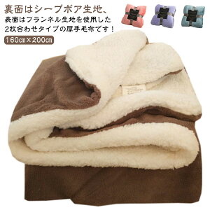 裏面はシープボア生地、表面はフランネル生地を使用した2枚合わせタイプの厚手毛布です!【160cm×200cm】見た目にも暖かな、毛足の長いモコモコシープボア素材をたっぷり使用、もう一面は肌触りの良いフランネル素材を使用します。ひざ掛