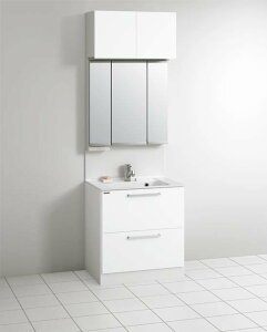 [仕様]:洗面台■洗面器:陶器製■洗面容量:15L■間口:750mm■水栓:シングルレバー混合水栓■収納キャビネット:扉タイプ■扉カラー:ホワイトミラー■鏡:3面鏡■照明:電球形LED照明■コンセント:1口(1300W以下)