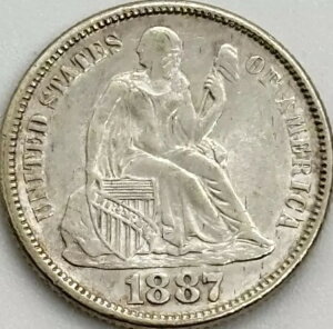 1887 Seated Liberty Dime Nice Original XF/AU #2996商品について流通/非流通額面 10セントコイン 着席型自由の女神像組成 銀発行年 1887年純度 0.9打刻タイプ ビジネス造幣局所在...