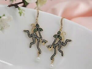boucles doreilles clips dore noir long singe animal filigrane pave original x13イヤリングゴールデンクリップロングブラックモンキーアニマルパヴェオリジナル