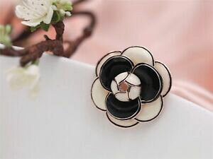 broche dorado grande flor camelia esmalte blanco negro clase original xz6ゴールドピンブラックホワイトエナメルクラス