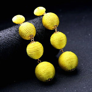 ohrringe mode gestt golden gelb wollknuel 4 kugel lange anhnger original x20ボールスタッドピアス ファッションゴールデンイエローウールロングトレーラ