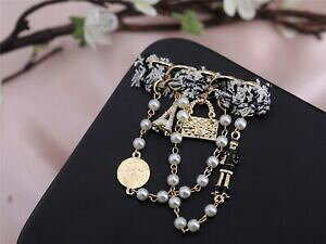 broche pin epingle noir blanc perle chaine charmes tour eiffel original xz8ピンピンブラックホワイトパールチェーンチャームエッフェルオリジナル