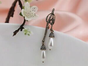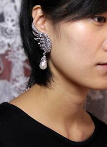 ohrringe mode gestt silber kristall flgel perle fallen art deco original x3ファッションスタッドピアス シルバークリスタルパールウィングケースアールデコ