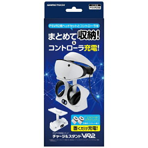 PSVR2用コントローラを2台同時に充電可能!付属のマグネット端子を取り付けて、ポンと置くだけ簡単充電!スタンド上部にはPSVR2用ヘッドセットを収納できる!【rb_remp】