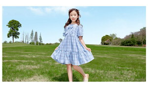 ワンピース 親子 ママ キッズ 格子 レジャー ブルー ピンク