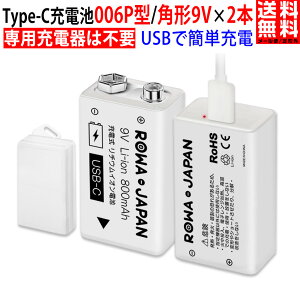 Type-C充電式【専用充電器は不要】USBで簡単充電♪♪ 【9V充電池×2個】+【USB Type-Cケーブル】+【電池ケース】 お得セット 商品特徴 1. 充電器不要、付属のUSBケーブルでチャージが出来る充電池 2....