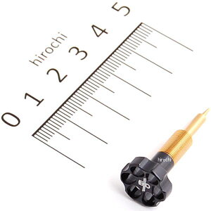 アルミ削り出しパイロットスクリューです。汎用・カラー:ブラック ・MIKUNI VM22キャブレター ・調整時に必要となるマイナスドライバーが本製品を装着することで不要となり、整備性が飛躍的に向上します。 ・又、アルミ削り出しアルマイ