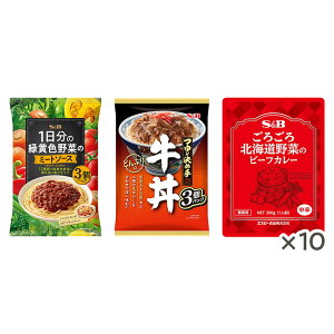 セット内容ごろごろ北海道野菜のビーフカレー200g:10個1日分の緑黄色野菜のミートソース 3個パック360g:1個どんぶり党 牛丼3個パック360g:1個納期情報(商品発送予定日)についてご注意ください商品の納期情報を表示させていた...