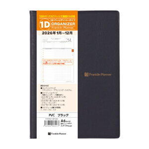 始まり手帳 オーガナイザー 1日1ページ デイリータイプ PVC A6 ブラック Franklin Planner メーカー品番:86557 2026年1月始まり綴じ手帳。A6サイズ1日1ページオーガナイザー...