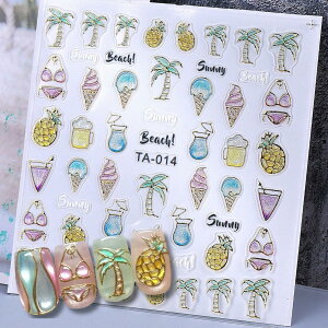 商品情報商品の説明「ネイルシール 夏」は、夏らしいビーチモチーフをたっぷり詰め込んだ華やかなネイルシールです。パイナップル、アイスクリーム、ヤシの木、カクテル、ビキニなど、夏気分を盛り上げる可愛らしい絵柄が多数揃ってお