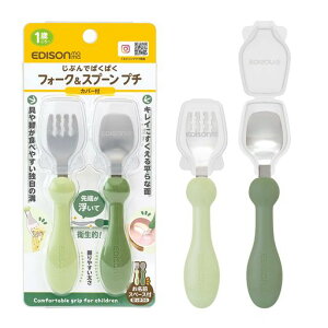 離乳食完了期 1歳頃~ オリーブ プチカバー付き 授乳・食事用品 食器・テーブルウェア カトラリー ベビー用 アースカラー 大人食器へのステップアップに!1歳頃からじぶんでぱくぱく食べられるフォー