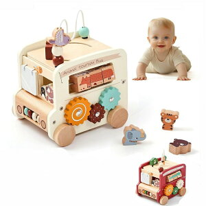 多機能知育キューブ型はめパズル・ビーズ迷路・スライド・ギア・そろばん・動物隠れ・音遊びなど、1つのおもちゃで8種類の遊びが楽しめるモンテッソーリ式アクティビティボックス!お子様の好奇心を刺激する多彩な仕掛け