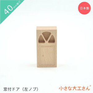 ぴったり感を出すため小さな面取りをしています。 直方体(50×25×100mm)にアーチ型の窓とドアの形の掘り込みを入れた積み木です。 ドアノブが左側についています。ドアとドアノ...