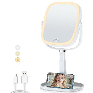 y4uqx商品名化粧鏡 卓上ミラー LEDライト付き 分離可能10倍拡大鏡 女優ミラー 3色調光 USB対応 360°回転キックスタンド メモリー機能 旅行用 オーラゴブランドFanciiカラー白い・調整可能なライト設...
