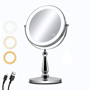 鏡面180度回転可●3倍拡大鏡付き●高さ調整可能●無段階調光/3色調光【商品説明】この卓上ミラーは、充電式で便利なUSB接続が可能なため、どこでも手軽に使用できます。3倍拡大鏡とLEDライトが付