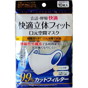 立体マスク、10枚入りです。口元の空間をキープし、息苦しくなりにくい立体形状のマスクです。3層構造の高密度フィルターで、空気中のウイルスや花粉等を防ぎます。耳掛け部分は伸縮性のある幅広不織布で耳が痛くなりにくいです...