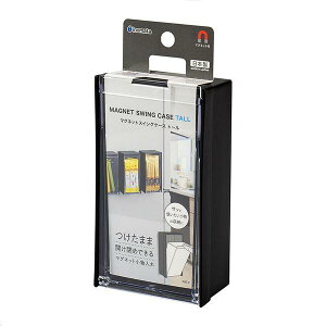 〇マグネットケースです。マグネット付きで、冷蔵庫やロッカーに貼り付けて使えます。つけたまま開け閉めできるスイングポケットです。サッと使いたい小物の収納に便利です。●サイズ(約)・85×48×高さ85mm●色・ブラック●耐熱120度(