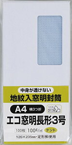 120×235mm・【サイズ】A4横3つ折り用・【内容量】100枚入・【窓明サイズ】45×90mm・ワンタッチテープ付・【紙厚】100g封入物が透けない地紋付窓明き封筒テープ...