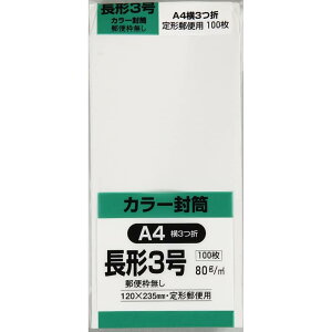 ション 封筒 ソフトカラー 長形3号 ホワイト 100枚 N3S80WYN120×235mm【サイズ】A4横3つ折り用【内容量】100枚入【紙厚】80g説明ソフトな色合いのカラー封筒定形封筒 枠なし A4横3つ折り用...