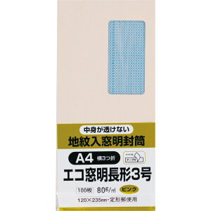 120mm×235mm, ピンク, ワンタッチテープ付, 長3 【サイズ】A4横3つ折り用 【内容量】100枚入 【紙厚】80g 【窓明サイズ】90mm×45mm 【仕様】ワンタッチテープ付