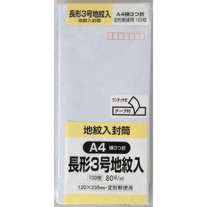 120x235mm 長形3号 ワンタッチホワイト封筒 対応サイズA4横3つ折り用 仕様センター貼・郵便枠有り 枚数100枚 紙厚80g/