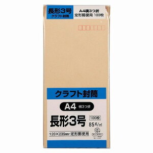 エコマーク認定商品】古紙配合率40%のクラフト紙を使用した長3封筒。A4書類を三ツ折(210×99mm)、A5書類を二ツ折(210×74mm)で封入できます。【サイズ】長形3号【用紙】クラフト【色】茶【寸法】120×235mm【窓】窓...