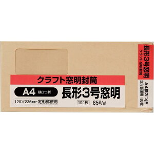 スタイル:テープなし◆商品名:キングコーポレーション 封筒 窓付き 長形3号 クラフト 100枚 N3KM85120mm×235mm【サイズ】A4横3つ折り用【内容量】100枚入【窓明サイズ】90mm×45mm【紙厚】85g