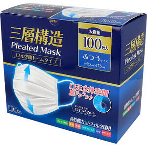商品説明・仕様 上下のプリーツが作る口元立体空間! 四つ折りプリーツがドーム状に広がることで、口元に空間をつくり不快な息苦しさを解消します。 ●三層構造。 不織布の三層構造フィルタで、ウイルス飛沫・花粉・ホコリのミクロ粒子