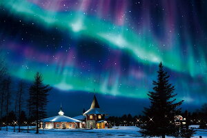 フィンランド北部のサンタクロース村。オーロラの観測地としてカナダやアラスカと並び有名で、美しいオーロラショーを求め。