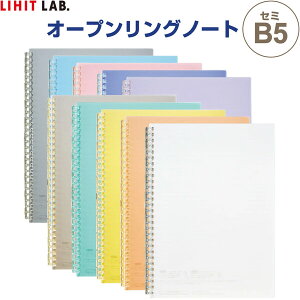 オープンリングノート セミB5サイズ リーフ30枚 B罫6mm 29穴 360°折り返し 学校 塾 持ち運び コンパクト 分類 整理 リヒトラブ。ルーズリーフみたいに、必要なリーフだけ持ち運べる!とじ具が開くからリーフの入替・追加ができる。