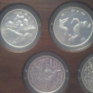 陸上競技・バドミントン・野球ソフトボール・体操・柔道・卓球・ボクシング・レスリング 合計9種類 1000円銀貨のデータ 直径:40.0mm 品位:銀999/1000 量目:31.1g。