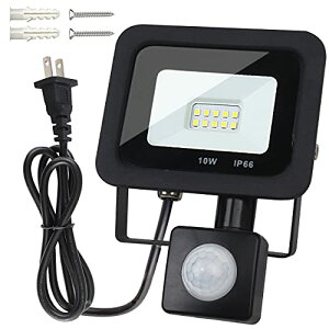 LED 【20223年改良 2Pプラグ 超薄型 ・ PSE認定に適合】投光器 10W 昼白色 6000K ・1000LM 作業灯 センサーライト 人感 防水IP66 屋外 コンセント 玄関 駐車場灯 防犯灯...