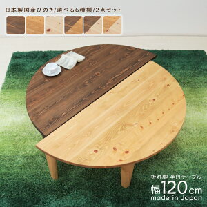 国産 日本製 完成品 半円折脚座卓 幅1200mm×奥行き600mm×高さ350mm。材質:国産ひのき材(集成材)。