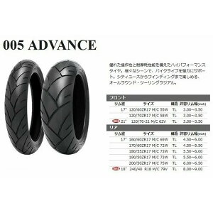 SHINKO 005アドバンス 120/70-17(120/70ZR17) *1本。005アドバンス 160/60-17(160/60ZR17) *1本。前後2本セット。