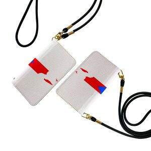 ショルダー付き手帳型スマホケース・シームレスな全面デザイン(内側は落ち着いたオフホワイト)・外側は高品質の人工革を使用・内側にはスマホを装着するケースが付属・機種専用のカメラホール仕様でケースを装着したまま