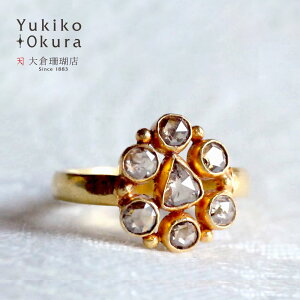 ブラウンのラフダイヤを7石使い、K18のリングに仕上げました。カジュアルな雰囲気。ハンドメイドならではの温かみのあるデザインです。フラワーのように円形に並び、キラキラとダイヤが輝きます。