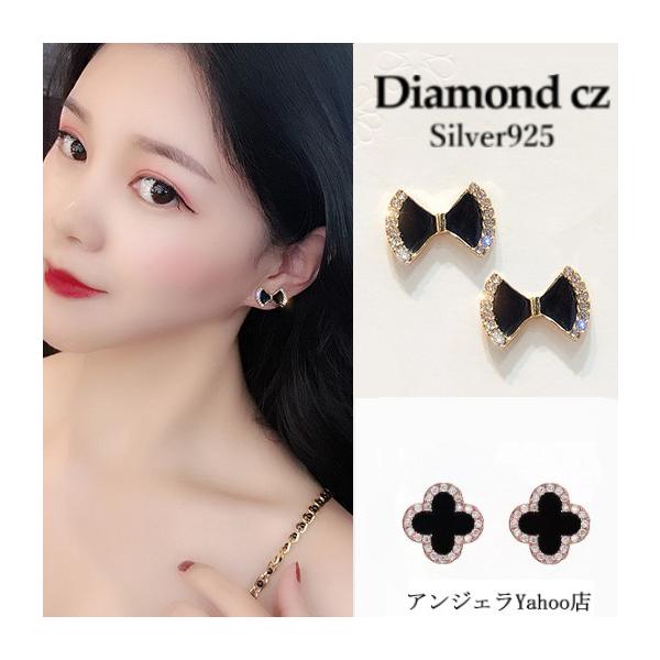 ピアス レディース シルバー925 キュービックジルコニア クローバー四つ葉 リボン蝶々czダイヤ スタッド アレルギー。クローバー四つ葉&リボン蝶々モチーフ2パターンデザイン、お好みをご選択下さい。...