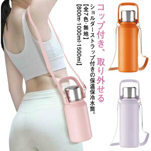 【800ml/1000ml/1500ml】コップ付き、取り外せるショルダーストラップ付きの保温保冷水筒。 「直飲み」と「コップ飲み」どちらのシーンでも使えるコップ付きワンタッチ栓真空2重構造を採用しているので保冷...