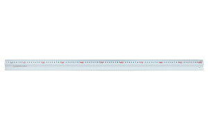 大きく鮮明な目盛数字を採用しました。 ●軽くて錆びず、丈夫です。 ●スベリ止付は裏面にスポンジが貼り付けてあり 軽い力で定規を押さえられます
