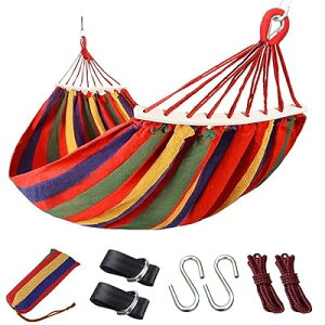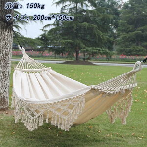 ハンモック 耐荷重250kg 幅広150cm 2人用 長く使える 高品質ハンモック 補強金具 長寿命 高密度コットン アウトドア キャンプ 二人用 ストライプ 共布収納袋。 【仕様】素材: 210T ナイロン...