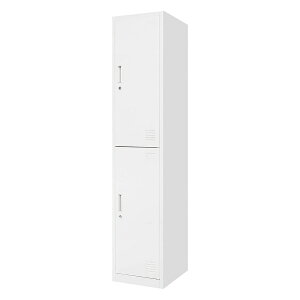 オフィスの定番ホワイトカラー。国産スチールロッカー/1列2段/2人用傷に強く耐久性に優れた粉体塗装。通気性を向上させるエアホールや、ネクタイ・タオル掛けが付いた快適なつくり。カギ紛失の心配が要らないダイヤル錠タイプです。