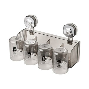 歯ブラシホルダー 壁掛け式 吸盤 歯磨きコップ 収納ラック 洗面所用品 透明ブラック 2人用