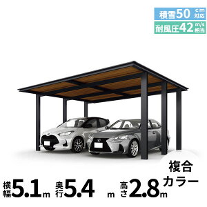アリュース 600タイプ 2台用 単体セット 54-48 H28 屋根ふき材:ポリカーボネート板 サイズ(mm)奥行5400 間口4801 高さ2800。材質本体:アルミ形材。カラー本体:ブラウン・カームブラック...