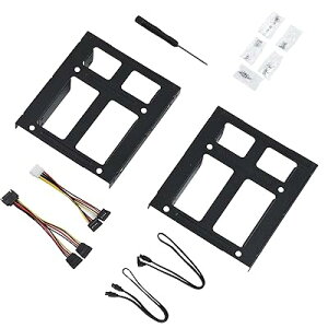 変換マウンタ 2.5インチ SSD/HDD用 SSD 変換ブラケット 2.5インチ から 3.5インチ変換 2台取付け ssd マウント 金属製 ネジセット 2xSATAデータケーブルと2x電源ケーブル付き。