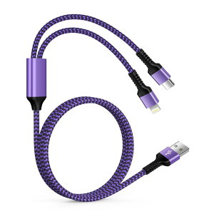 to Light ning&Type-C 2in1 充電ケーブル iPhoneとAndriod 2台同時急速充電 マルチケーブル 1本2股/1.2m/5.4A ライトニングケーブルとUSB-Cケーブル...